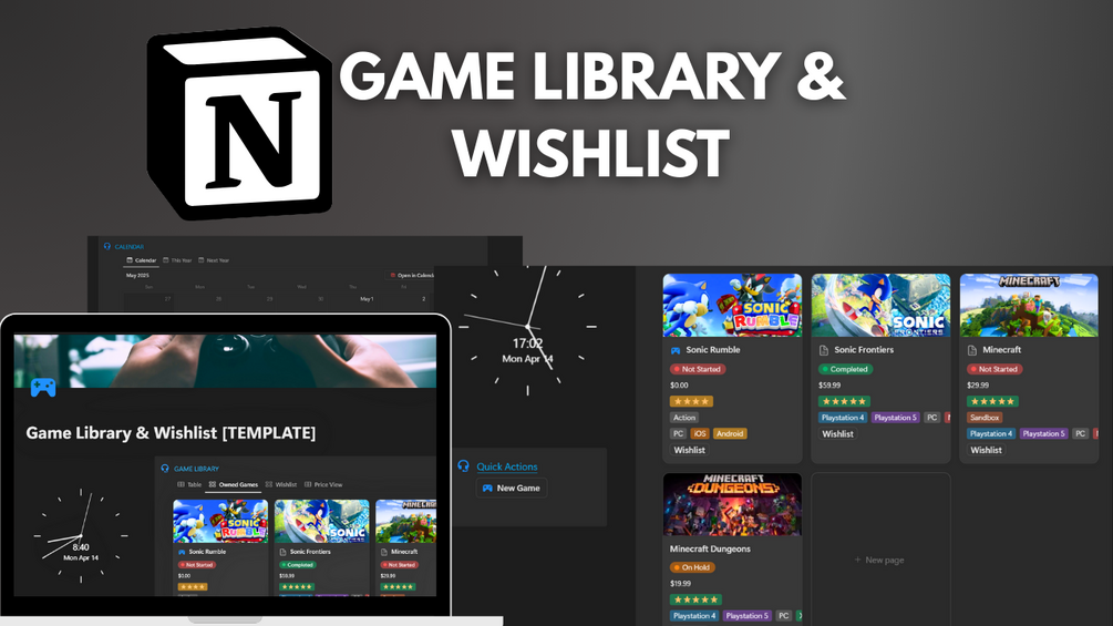 Tired of scattered game cases, endless digital storefronts, and forgetting which gems you even own? This Notion template is your ultimate command centre for conquering your gaming backlog and celebrating your collection!